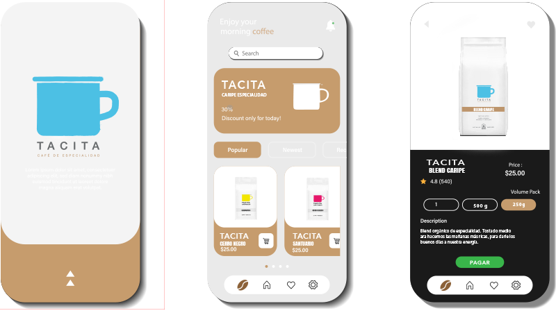 Aplicación móvil para Android y iOS que te permite solicitar cualquiera de nuestros productos y servicios desde cualquier lugar, como por ejemplo: Paquete de Tacita Café 500 gramos, recién molido en cualquiera de nuestras presentaciones.